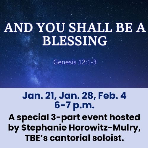 A special 3-part event hosted by Stephanie Horowitz-Mulry, TBE’s cantorial soloist.
